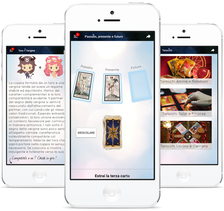 Esamina la tua situazione da un nuovo punto di vista e lasciati guidare dalle carte dei Tarocchi. Compatibilità astrologica basata sul tuo segno zodiacale. Applicazione gratis 100% in italiano.